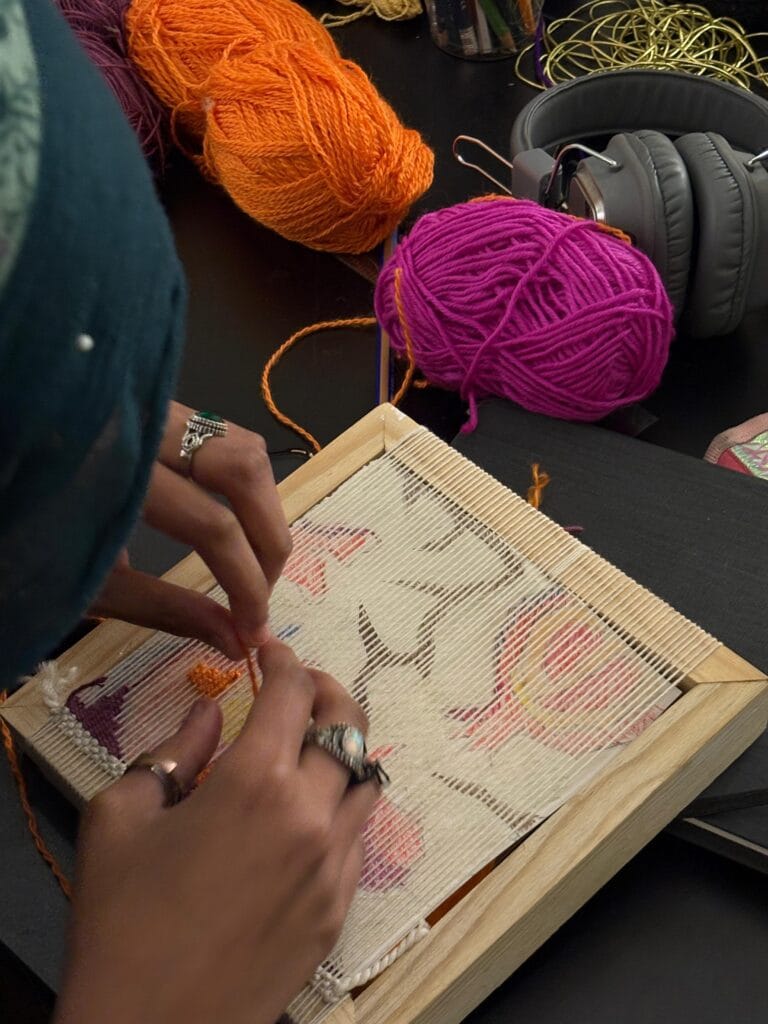 الورشة دي متخصصة في النسيج، هنركّز فيها على مبادئ الحرفة، وبناء قطعة نسيج من الصفر بطريقة بسيطة وملهمة. بنبدأ في الورشة بالتعرّف على تاريخ النسيج وسماته البصرية، بعدين ننتقل لأساسيات اختيار الخيوط، شدّ النول، وبناء الباترن خطوة بخطوة.