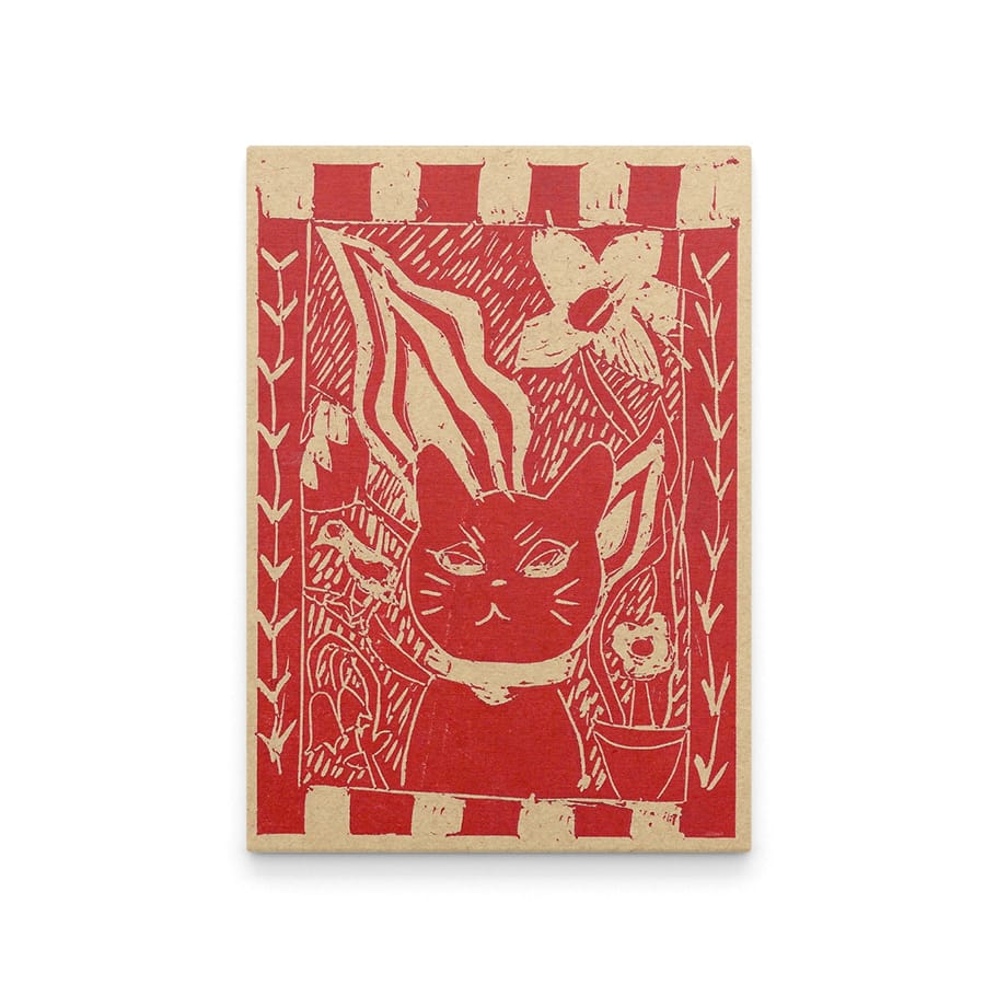 LinoPrint-Red Cat-Postcard